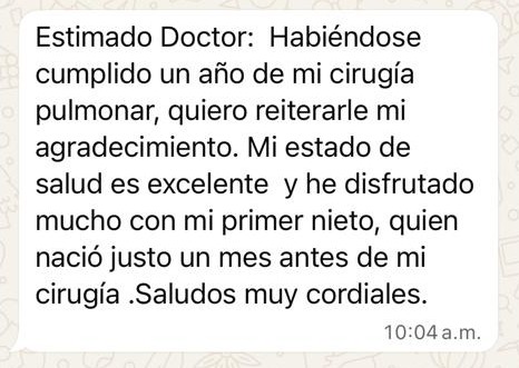 El 90% de estas cirugías se realizan mediante abordaje VATS Uniportal, asegurando menos dolor postoperatorio y tiempos de recuperación más cortos. Esta técnica de mínima invasión permite a los pacientes reincorporarse a sus actividades cotidianas en menor tiempo y con menos complicaciones.